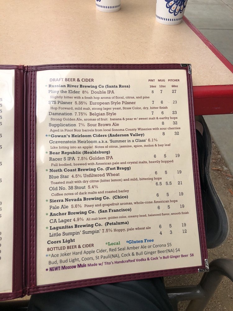 Welcome to Russian River Pub, a delightful American eatery nestled along River Road in Forestville, CA. Renowned for its robust selection of burgers and beers, this women-owned pub is a favorite among locals and visitors alike, especially after a day on the river. With options for both indoor and outdoor seating, including heated areas for chillier nights, the ambiance is perfect for groups and families.